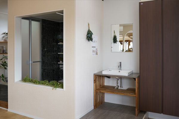 マニカホーム日進ショールームでは、お客様がリフォームのスタイル・コーディネートを具体的に想像できるように、水まわりの商品展示と合わせて空間展示を行っております。