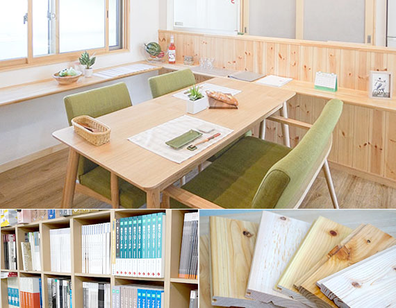 広々とした打ち合わせスペースには、壁紙やフローリングなどの各種サンプルや多種多様なカタログをご用意しております。ショールームの展示品含め見ながら・触れながら、お打ち合わせください。