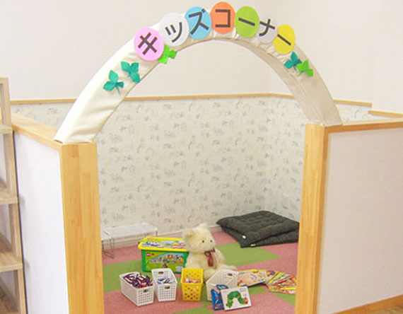 ご家族皆様でお越しいただけるよう、キッズコーナーも完備。DVDや絵本などご用意しておりますので、すぐそばで遊ぶお子様を見守りながら、安心してお住まいについてご相談いただけます。