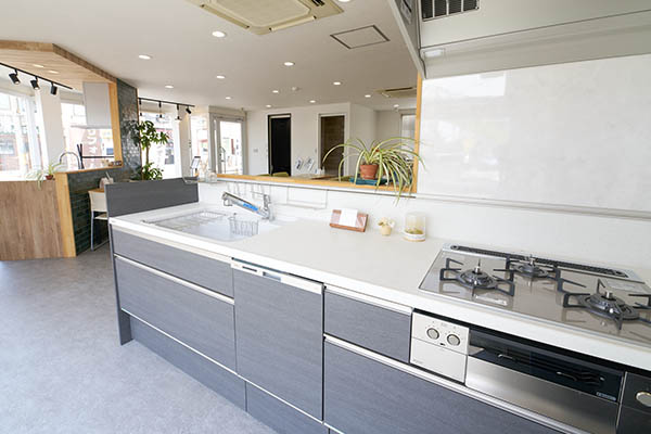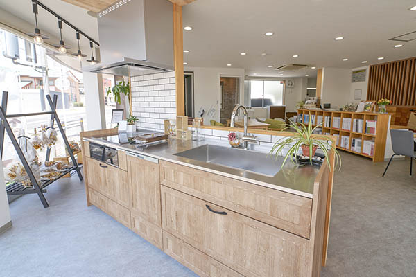 ショールーム内には実際のLDKや洗面所、トイレなど実際の住宅を想定した空間展示がございます。またキッチンなどの商品の展示もございます。