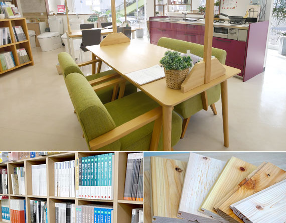 壁紙・フローリングなどの内装から、キッチンやトイレなどの住宅設備、給湯器やコンロなどまで住まいに関わるカタログやサンプルを多彩に取り揃えてあります。