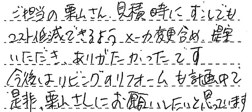 今後はリビングのリフォームも計画中で是非、栗山さんにお願いしたいと思っています。