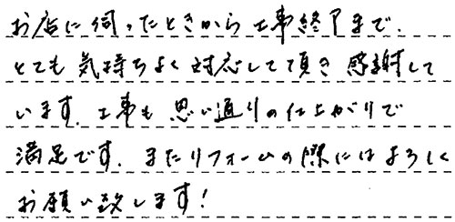 とても気持ちよく対応して頂き感謝しています。工事も思い通りの仕上がりで