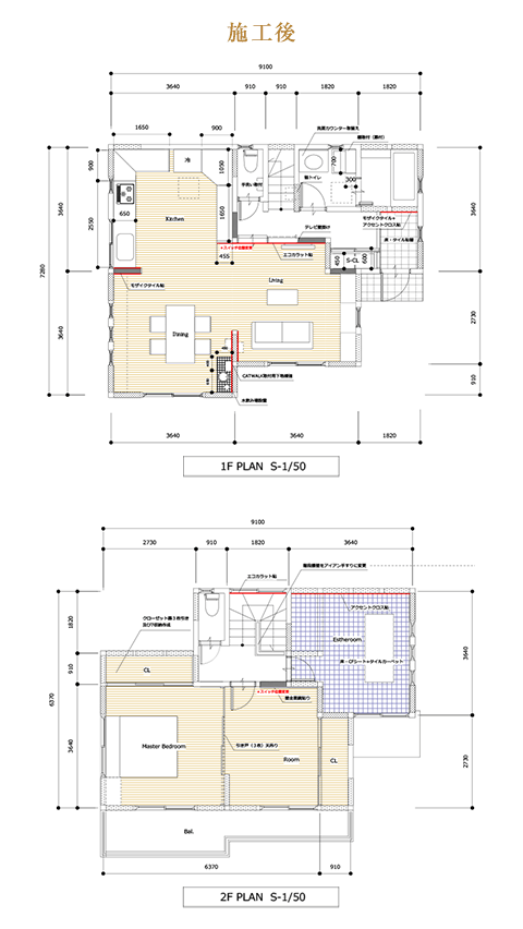 たくさんの来客をお迎えできる、ゆったりとしたリビングへとリフォーム。自然光が差し込む開放感のある空間には、猫ちゃん専用のキャットタワーや水飲み場も造作。滑りにくく床暖房にも対応した無垢材の床で、快適に過ごせます。壁には消臭効果のあるエコカラットを採用し、人にもペットにも心地よい空間に仕上がりました。