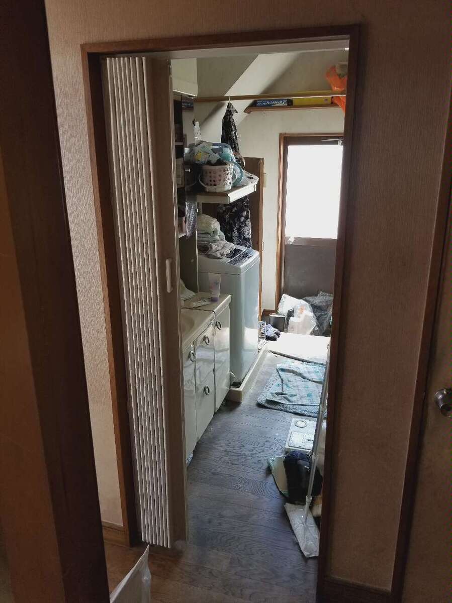 狭くて収納が少なかった洗面所を、リフォームによって使いやすく改善。洗濯機の配置や床形状を見直し、奥行きの浅い洗面台や収納棚を設置して空間を広く活用。洗面台の幅も広げ、収納棚を追加。洗濯機上には洗剤置きに便利なニッチも設けました。