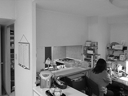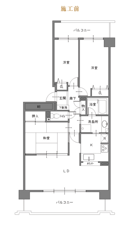 和室を縮小してリビングを広げ、大きなソファが置ける開放的な空間に。照明一体型スピーカーで音楽を楽しみながらくつろげます。天井物干しを設置し洗濯も快適に。さらにデスク横に可動式本棚を造作し、本を整理しやすい便利なワークスペースが生まれました。
