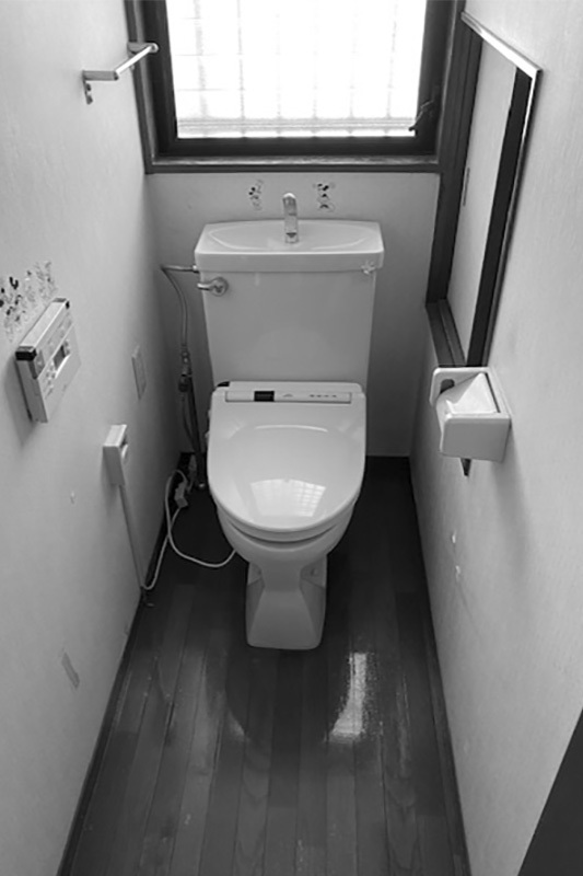 2階のトイレを別の場所へ移設し、間取りを変更してリフォームしました。古く掃除がしにくかったトイレを、お手入れがしやすく快適な空間に一新。新しいトイレは掃除のしやすさに加え、照明にペンダントライトを取り入れることで、落ち着きとデザイン性を感じる空間に生まれ変わりました。