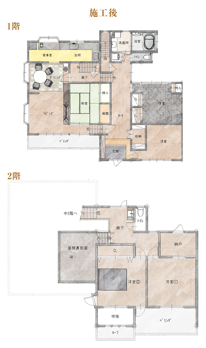 掃除のしやすさを優先し、壁の腰の高さまでキッチンパネルを貼りました。水はねや汚れが付いてもすぐに拭き取れるため、清潔な状態を保ちやすい仕上がりです。また、トイレ本体も新しく交換し、空間全体がすっきりと整いました。まとまりよく、落ち着いた空間に仕上がっています。