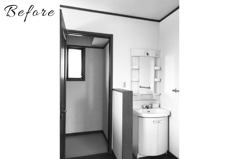 「洗面所にもっと収納が欲しい」とのご要望から、洗面台に合わせてオーダー収納棚を造作しました。色やサイズを自由に選べるため、空間にぴったりフィットし、見た目も機能性も大幅にアップ。使いやすくスッキリとした洗面空間に生まれ変わりました。あわせて2階の洗面台も新しく交換しました。