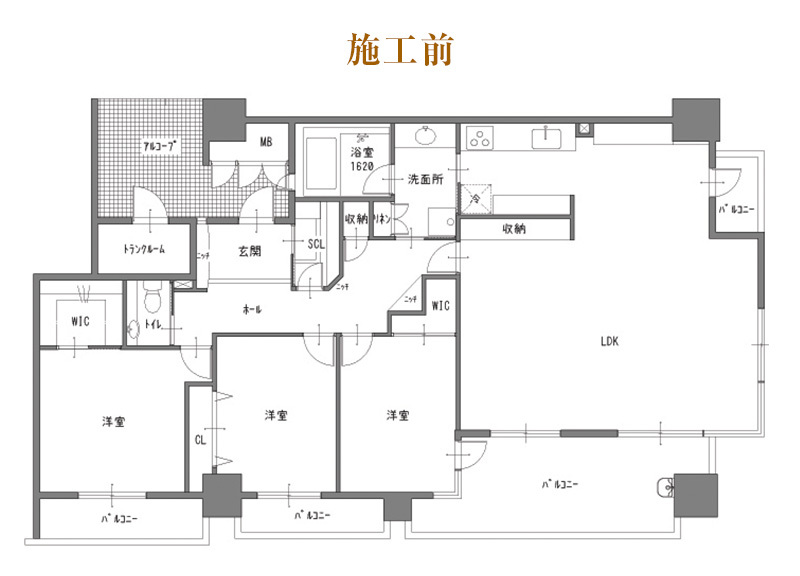 当初は一面鏡の洗面台を予定していましたが、「やっぱり収納が欲しい」とのご要望から、既存の三面鏡を活かしたプランに変更しました。下台にはサイズオーダーができるスマートサニタリーを採用し、ぴったり収まる収納ですっきりとした印象に。水ハネ防止パネルと間接照明で洗練された空間を演出。浴室は黒い浴槽が映えるシステムバスを設置し、“ホテルライク”な仕上がりとなりました。
