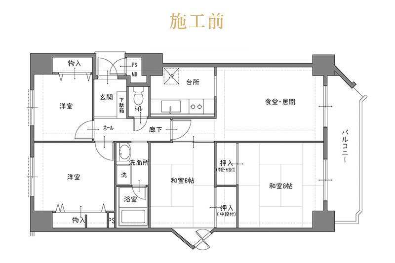 キッチンは1人の空間であってほしいという奥様の想いを形にしました。前面の壁を残しつつ新たに窓を設け、光と風が抜ける心地よい空間に。窓越しに見える高層階ならではの眺めが、日常の家事時間を特別なひとときへと変えます。閉じすぎず、開きすぎないバランスが心地よい、セミオープンキッチンが完成しました。