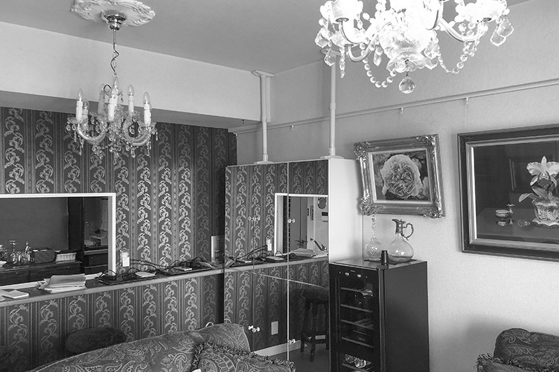 閉鎖的だったキッチンの垂れ壁を撤去し、リビングと一体化した開放的な空間へ。天井の高さを調整することで梁の干渉を避け、すっきりとした印象に仕上げました。高級感のある人造大理石カウンターや質感にこだわった素材を採用し、家具や絵画と調和する上質なLDKを実現。デザイン性と機能性を両立した、居心地のよいオープンキッチンが完成しました。