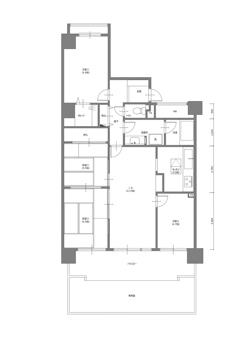 4.5帖の洋室2は、コンパクトながら使い方の幅が広いのが魅力。