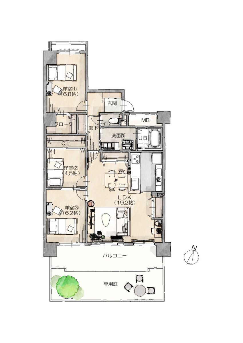 マンションでは珍しい“庭のある暮らし”が、毎日にちょっとした贅沢を添えてくれます。