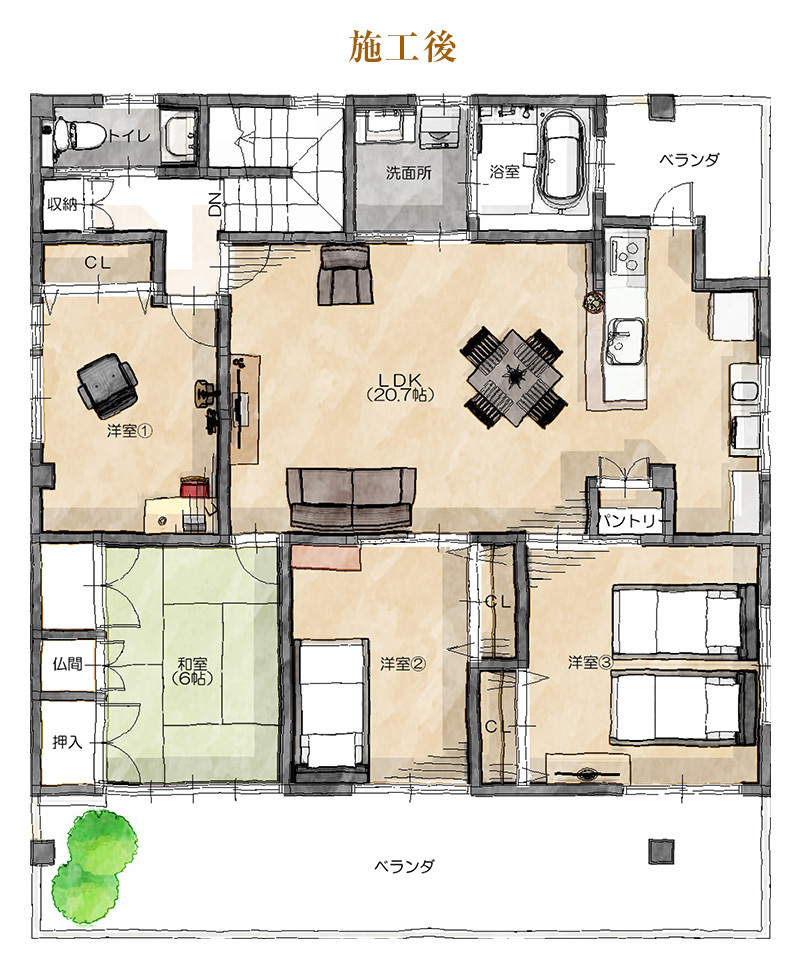 そこで、納戸だったスペースにトイレを移設し、より広く快適な空間を確保しました。