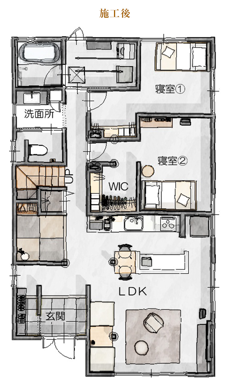 2階から1階へと生活拠点を移す、将来を見据えたリフォーム工事に携わらせていただき、大変嬉しく感じております。
