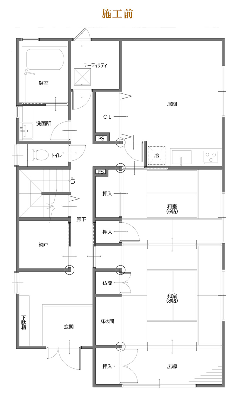 以前ご両親がお住まいだった1階がそのままの状態だったため、これからはO様ご夫妻が1階で暮らせるように改装したいとお考えでした。