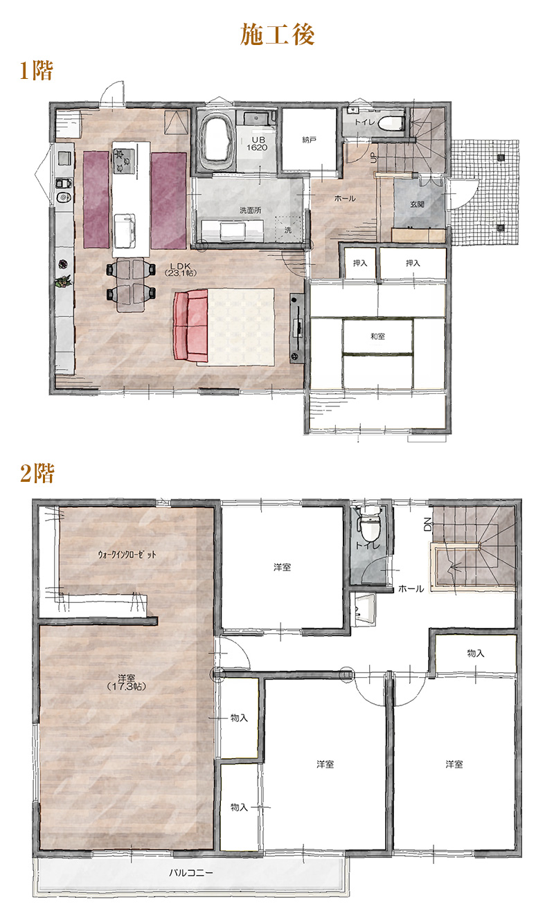 その中から、和室2部屋とキッチン室をつなげてLDKを広げるプランをお選びいただきました。