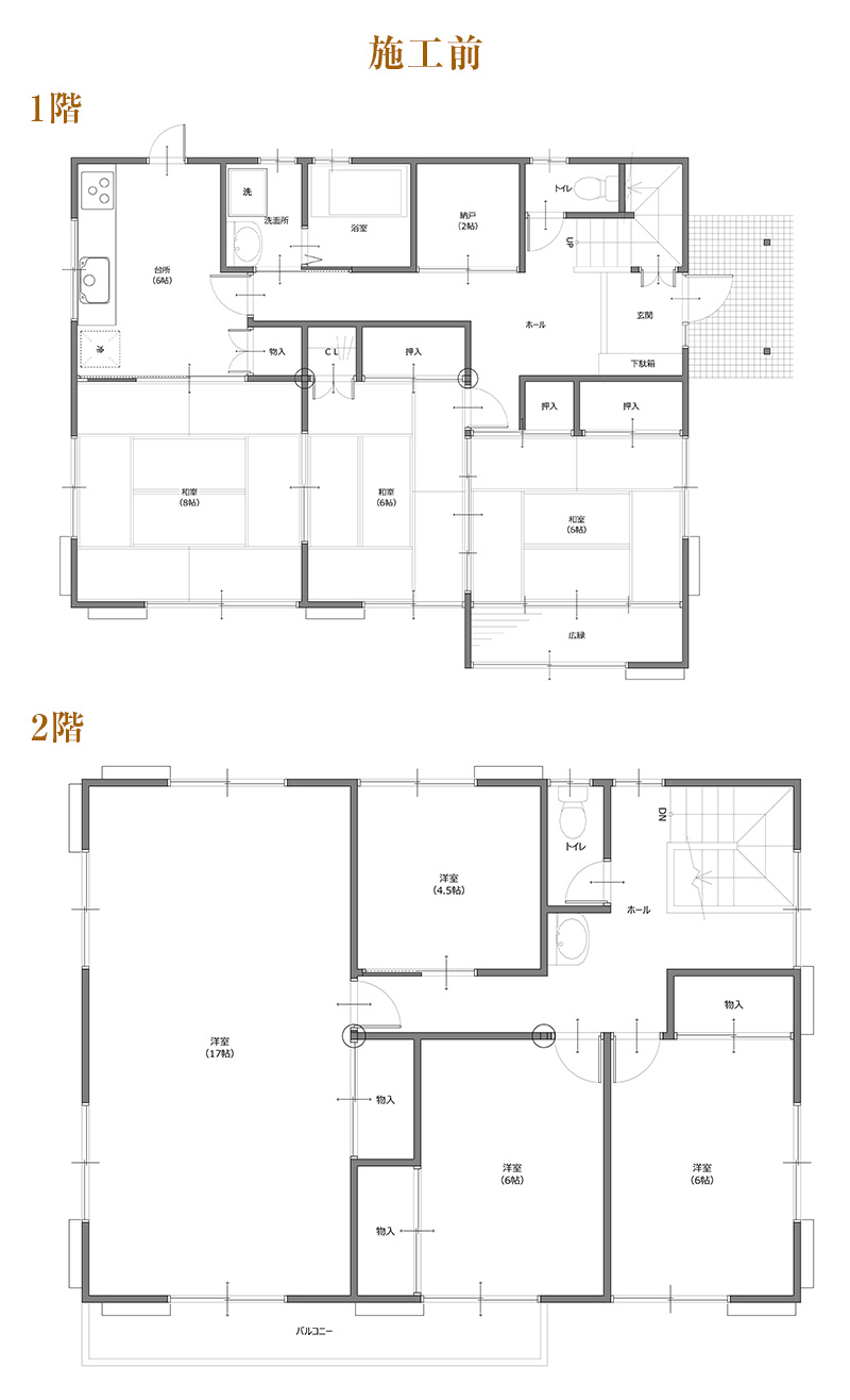 築30年ほどのご実家は、和室が3部屋とキッチン室、その他は水まわり空間で、各部屋が仕切られた造りでした。