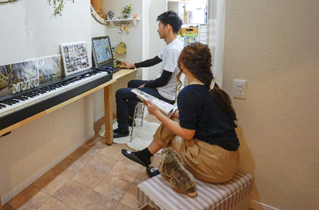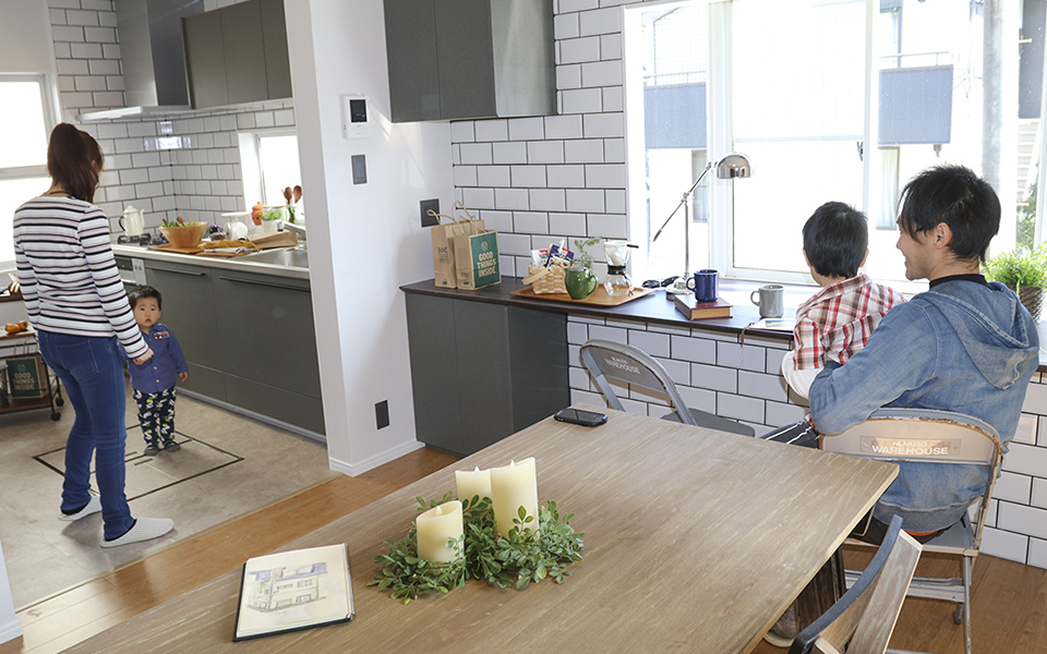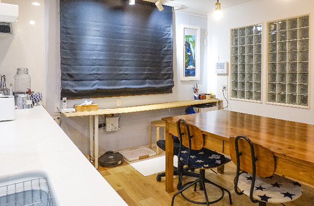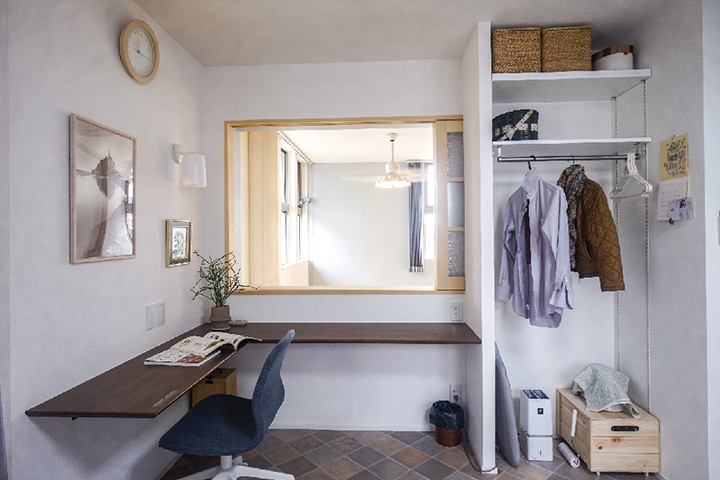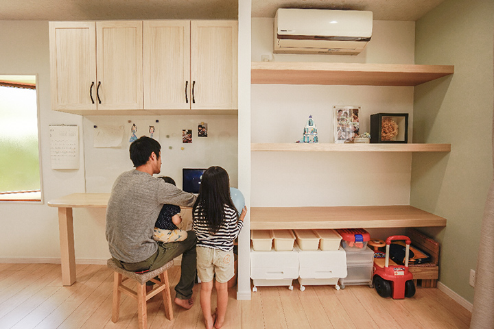 生活空間の中に机を置き、家族の様子を気にかけながら作業するスタイルのワークスペース。