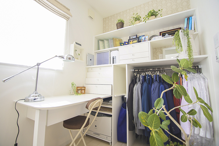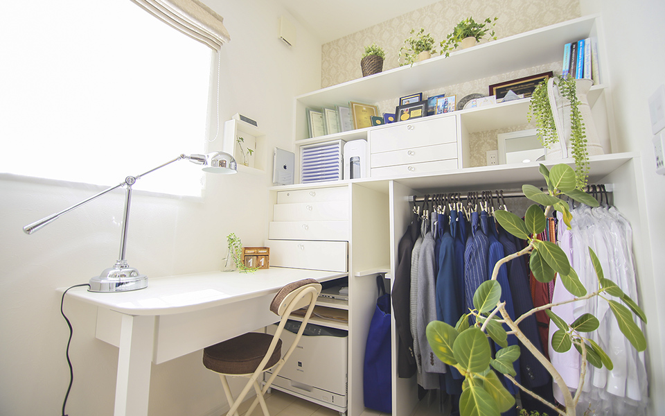 ご主人が自宅でお仕事をされる時間があるため、増築をして仕事専用スペースを作りたいというご依頼でした。増築するにあたって収納スペースも増やしたいというご要望もあり、収納と作業スペースを両立させた増築をテーマに施工しました。
