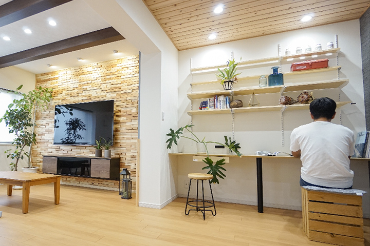 空間を明るくしたい、子供たちが遊べるスペースが欲しい、収納を多くしたいということで、LDK改装計画が始まりました。ご主人のスペースの横には、お子様のスペースを作り一緒に過ごすことが出来るようにご提案。